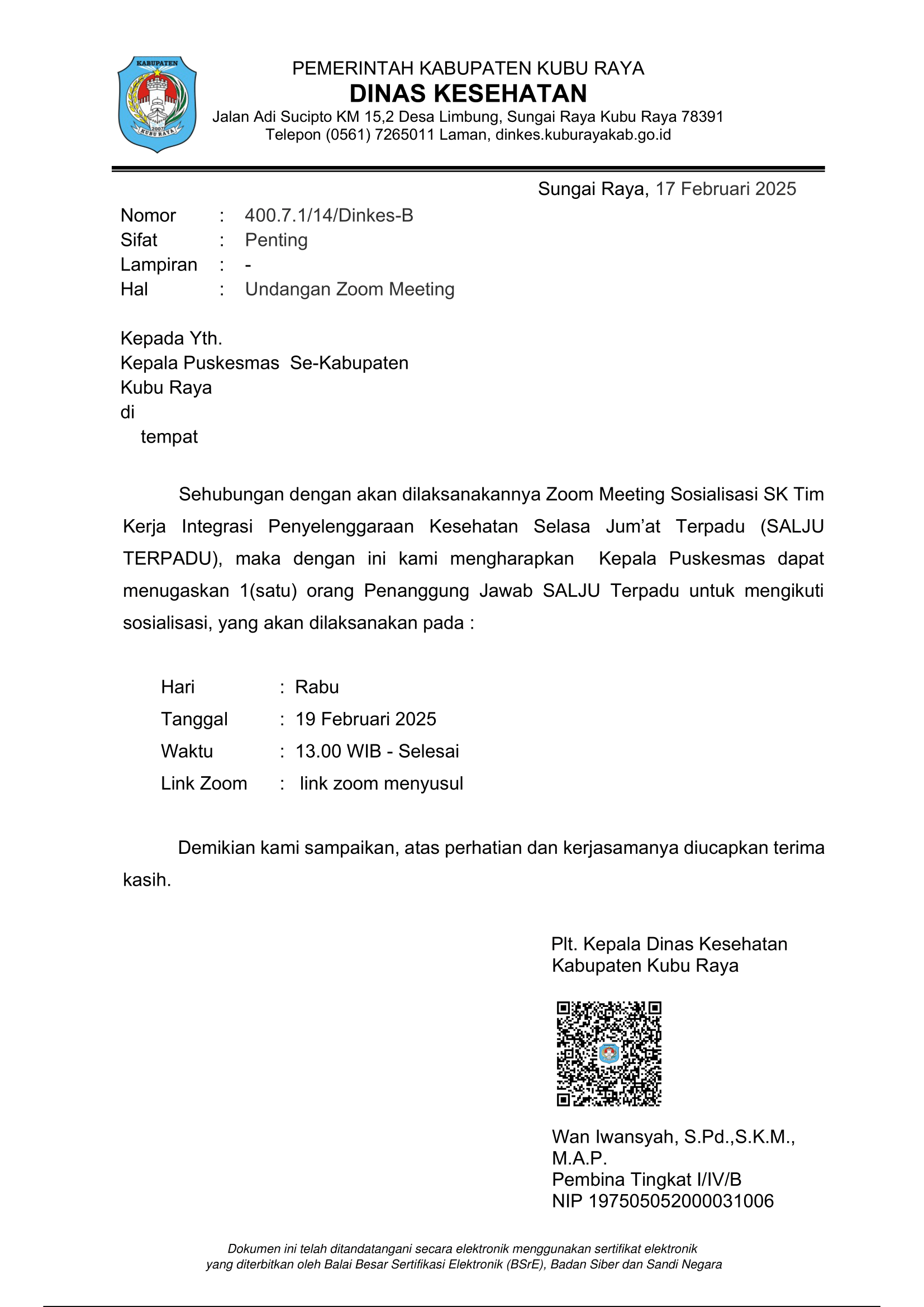 Undangan Zoom Meeting Sosialisasi SK Tim Kerja Salju Terpadu