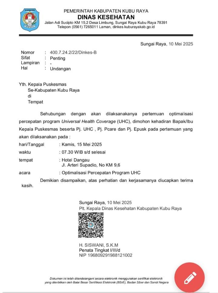 Undangan Best Practice Sharing (BPS) Person In Charge (PIC) Pcare Fasilitas Kesehatan Tingkat Pertama (FKTP)