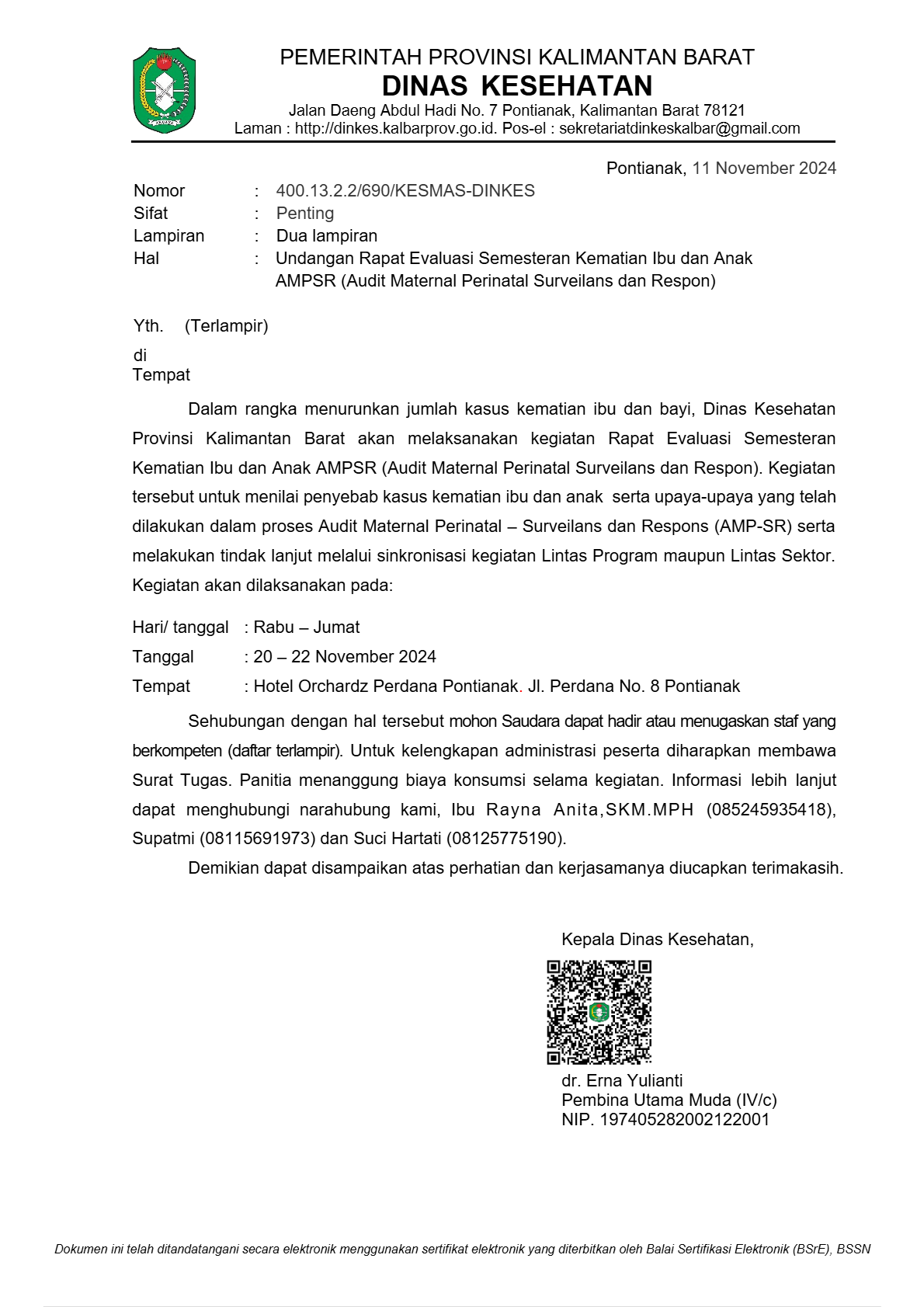 Undangan Rapat Evaliasi Semesteran Kematian Ibu dan Anak AMPSR (Audit Maternal Perinatal Surveilans dan Respon)