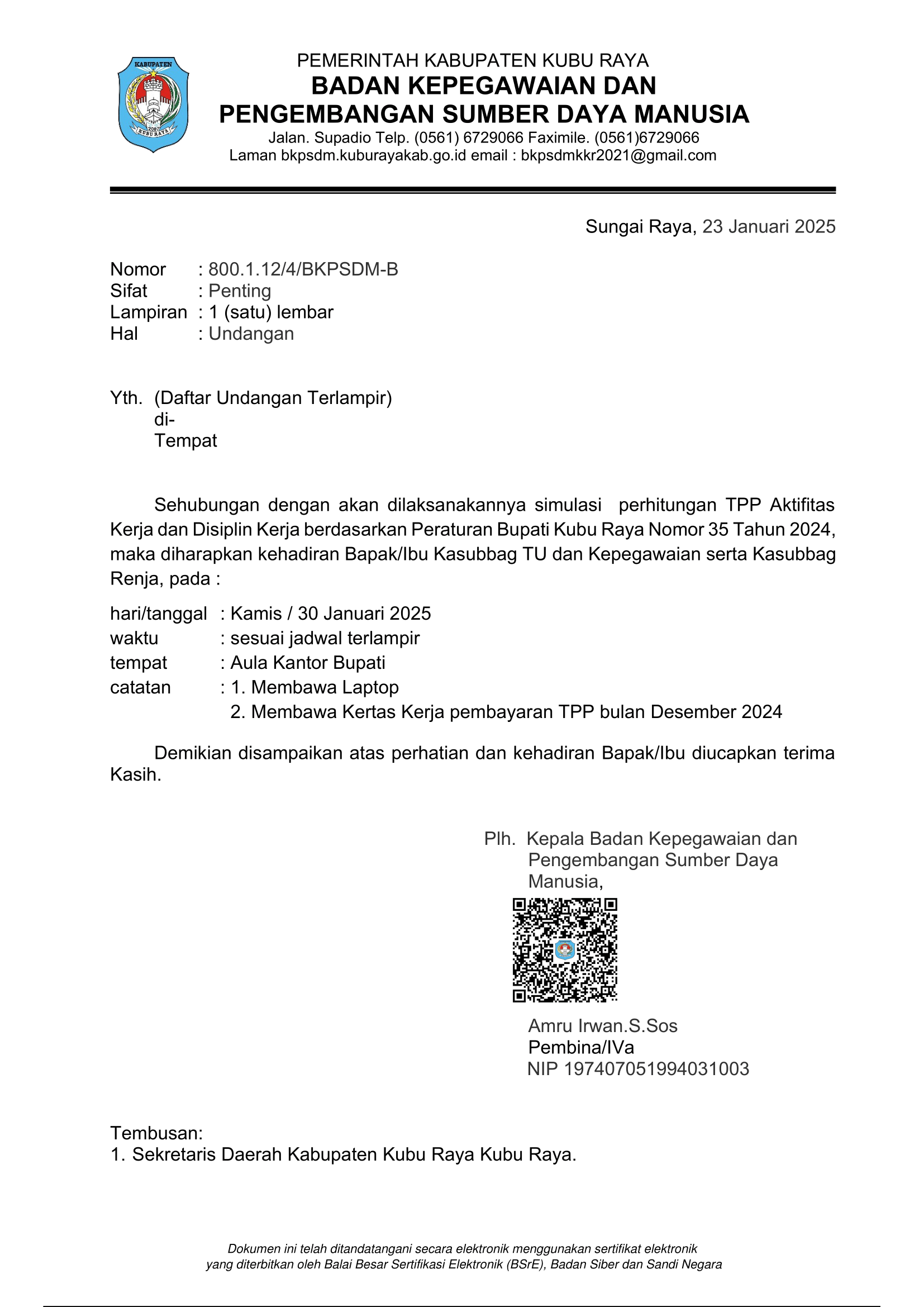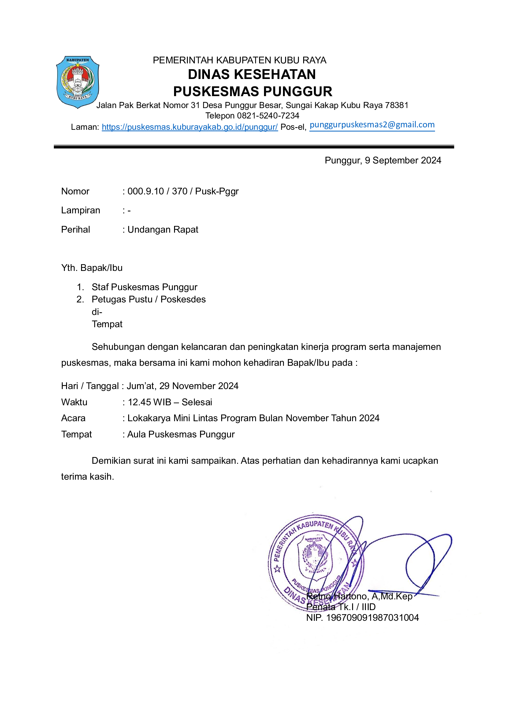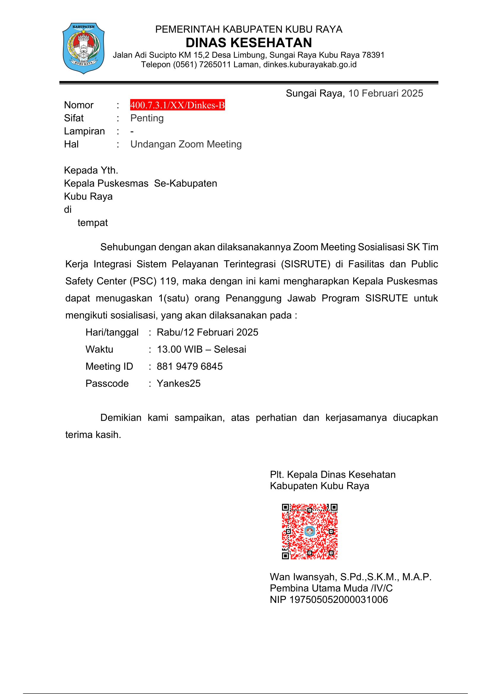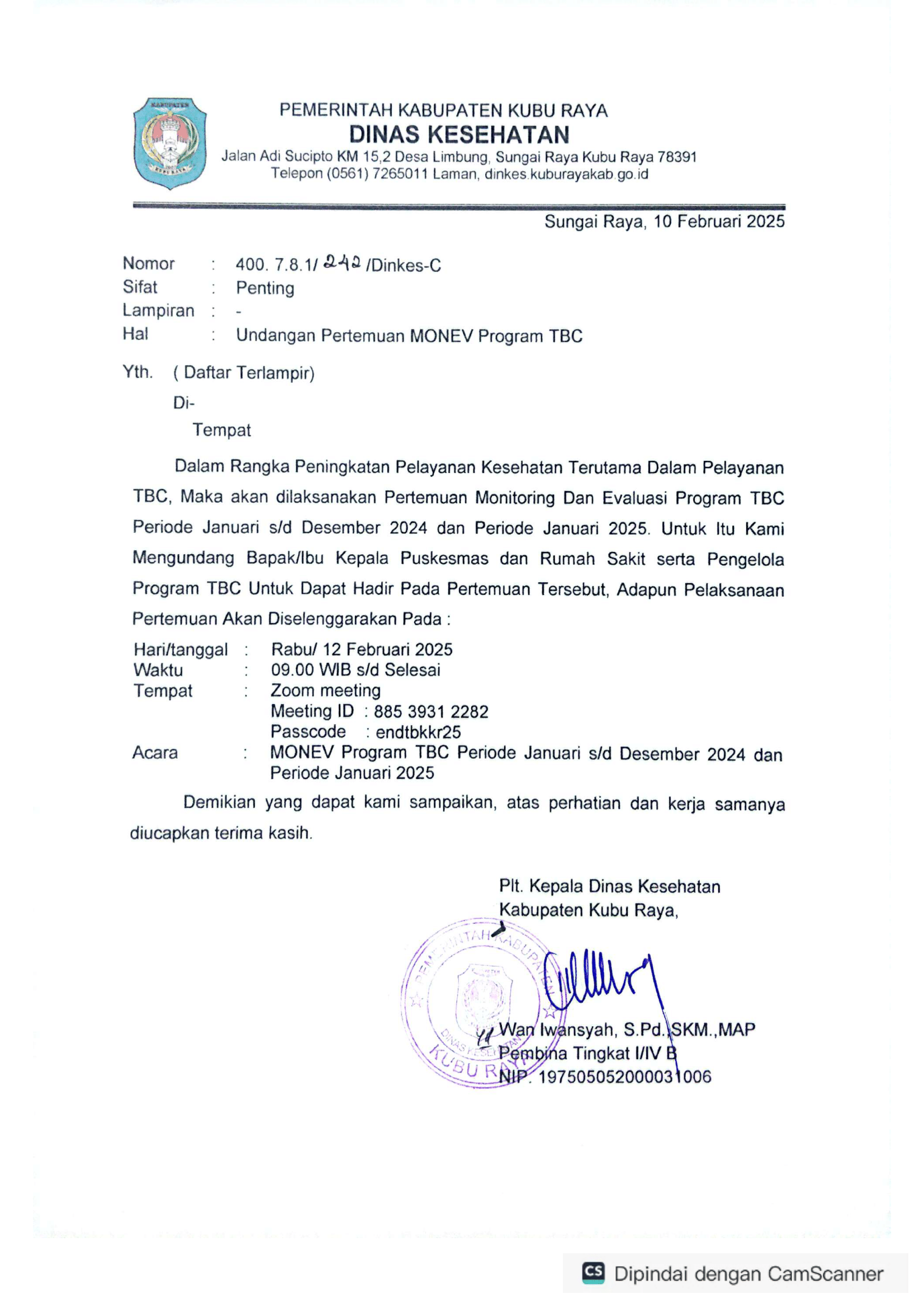 Undangan Pertemuan Monev Program TBC